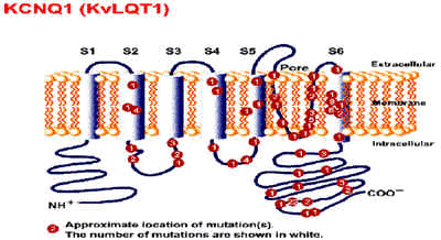 Mutación del gene KVLQT1 ,en el cromosoma 11p15.5 (LQT1) , si es homocigótica produce el síndrome de Langen Nielsen, si la mutación es heterocigótica produce el síndrome de Romano Ward . KVLQT1 codifica una proteína del canal de potasio Iks , que interactua con otro pequeño canal de potasio el Mink para formar el canal de potasio Iks . Las mutaciones de éstos, originan pérdida en la función del canal . Esta es la variante más frecuente.