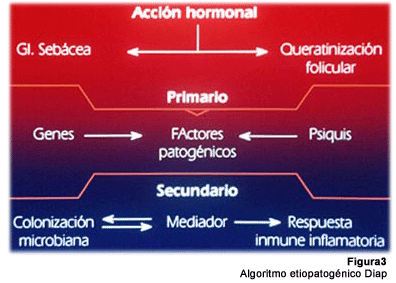 en el ducto pilosebáceo) representa el pivote de factores que se engranan