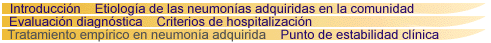 Este esquema con penicilina ha de evaluarse a las 72 horas con la intención de apreciar el punto de estabilidad clínica (ver adelante); si hay mejoría mantener penicilina, si por el contrario no hay mejoría e incluso existe deterioro clínico considerar: resistencia bacteriana e iniciar tratamiento con cefalosporinas de 3ª generación y/o presencia de gérmenes atípicos sugiriéndose tratamiento con macrólidos.