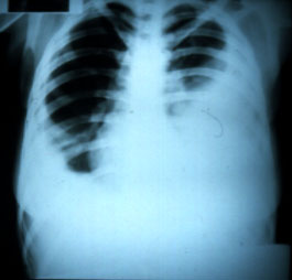 | Paroniquía en quinto dedo mano derecha | En la radiografía de tórax postero-anterior se observó paquipleuritis bilateral. |