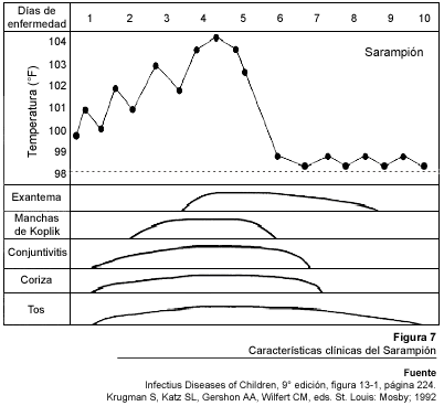 El curso clínico típico del sarampión se muestra en la Figura 7.