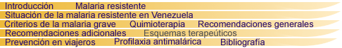 Esquemas terapeuticos para medicamentos antimaláricos disponibles en el pais,