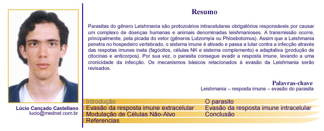 Summary Parasites from genus Leishmania are intracellular obligate protozoan responsible for causing human and animal complex of diseases called leishmaniasis. Transmission occurs mainly after vector biting (genus Lutzomyia or Phloebotomus). When Leishmania enters vertebrate host, its immune system is activated and starts to fight against infection by innate (phagocytes, NK cells and complement system) and adaptive (cytokine and antibody production) immune responses. Parasite can evade immune response providing chronic infection. Basic Leishmania evasion-related mechanisms will be revised. Keywords